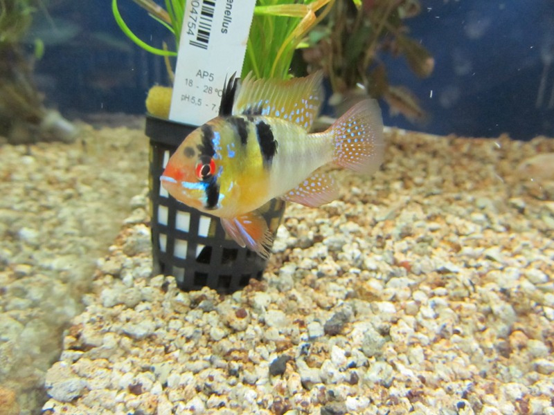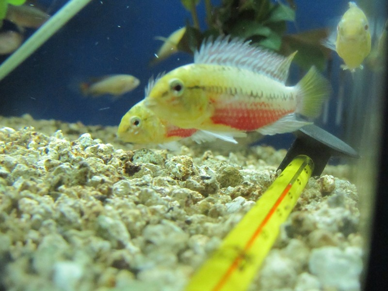 Por eso y por el bienestar general, es aconsejable que el acuario esté medianamente plantado o tenga troncos o cuevas que hagan de escondites y faciliten la delimitación de territorios. La puesta se hace en una planta de hojas grandes como Anubias o Echinodorus o en cualquier superficie que consideren oportuna, como los cristales del acuario. Los padres cuidan la puesta, normalmente la hembra se queda “abanicando” los huevos para que tengan corriente y no se formen hongos y el macho hace guardia para que nadie se acerque, echa a cualquier pez – no le importará la talla – fuera de los límites de su territorio.Son omnívoros aunque tienen preferencia por las proteínas, sobe todo si están vivas.