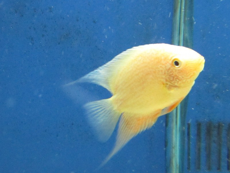 A partir de aquí se desarrollarán solos. Los alimentaremos primero con infusorios o alguna papilla muy muy líquida. Incluso podemos usar yema de huevo cocida en muy pequeñas cantidades aunque tiende a ensuciar muy rápido el agua y los alevines podrían morir si se descompone. Después comienzan a comer nauplios de artemia recién eclosionados y gusanos pequeños como la anguililla del vinagre o grindal pequeños. Conforme vayan creciendo les iremos pasando a alimentos cada vez más grandes y después les acostumbraremos a la escama o el gránulo definitivos, cosa que no suelen despreciar porque son bastante voraces. No aceptan alimento seco de pequeños pero a partir de cierto tamaño (variable) comen de todo.